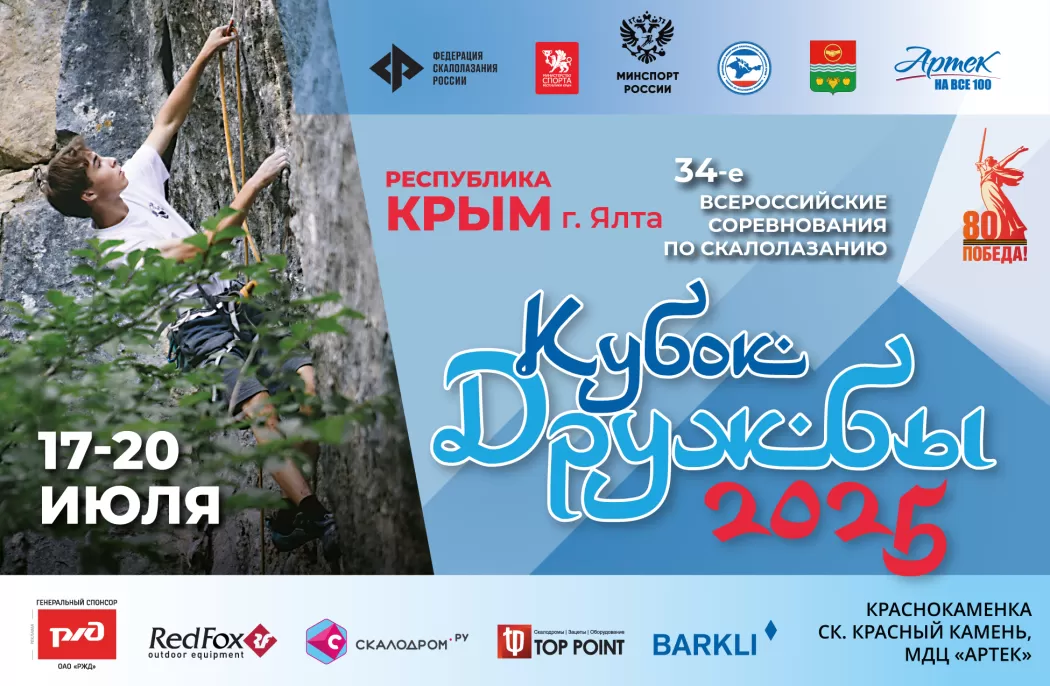 Основное Место проведения: Ялта Группы: Юниоры, юниорки 18-19 летЮноши, девушки 16-17 летЮноши, девушки 14-15 летЮноши, девушки 10-13 лет Дисциплины: Лазание на трудностьЛазание на скорость