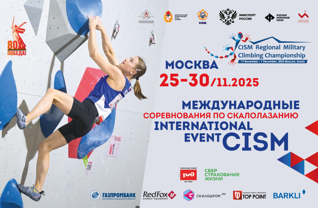 С 26 по 30 ноября Москва примет два международных старта по скалолазанию. В Центре скалолазания ЦСКА пройдут региональный чемпионат CISM (Международный совет военного спорта) и международные соревнования по скалолазанию. В двух турнирах примут участие представители 14 стран. Это Бангладеш, Республика Беларусь, Греция, Зимбабве, Индия, Иордания, Иран, Катар, Кыргызстан, Маврикий, ОАЭ, Россия, Таджикистан, Танзания.